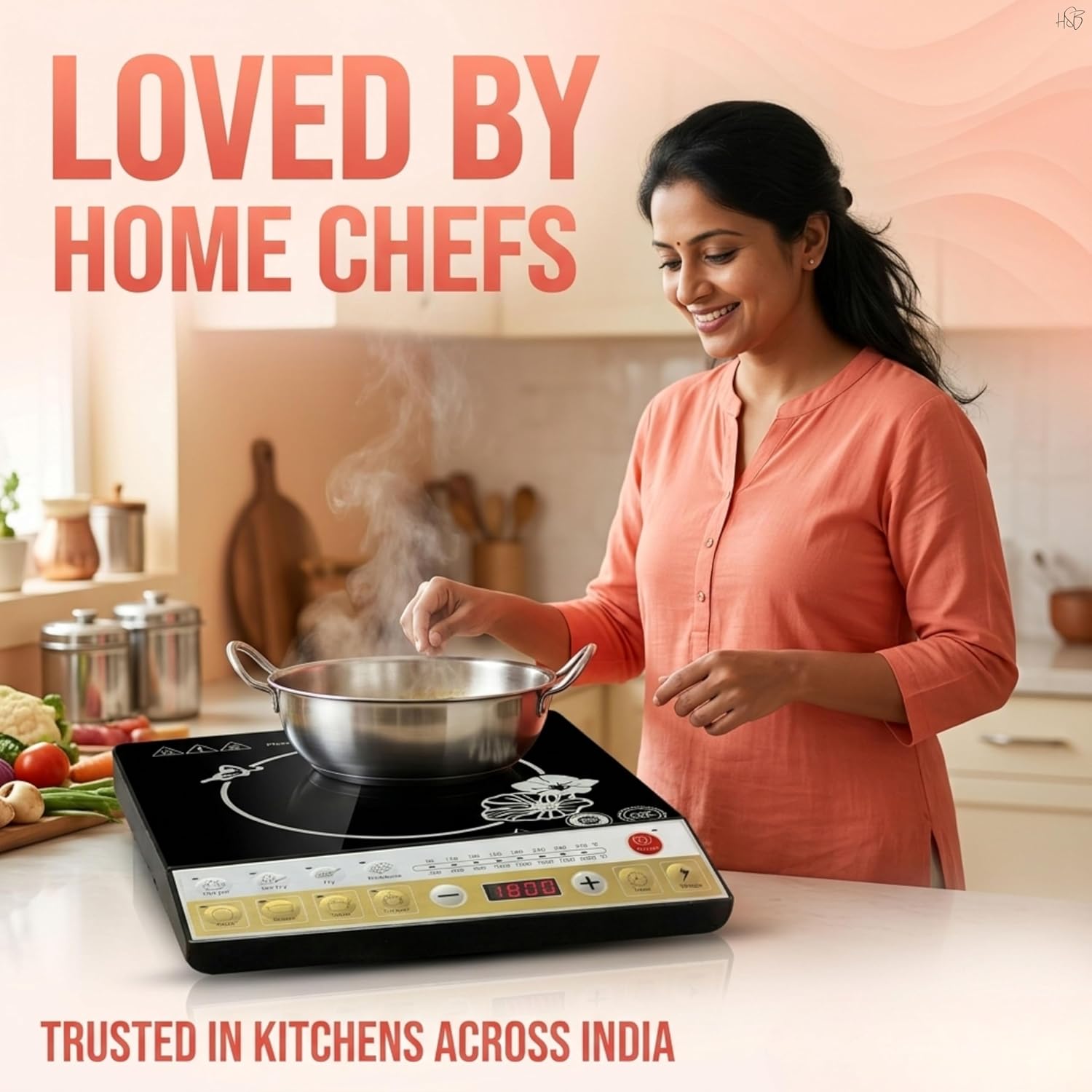 2000W Fast Heating Power: Delivers strong performance for quick boiling, frying, simmering, and reheating.