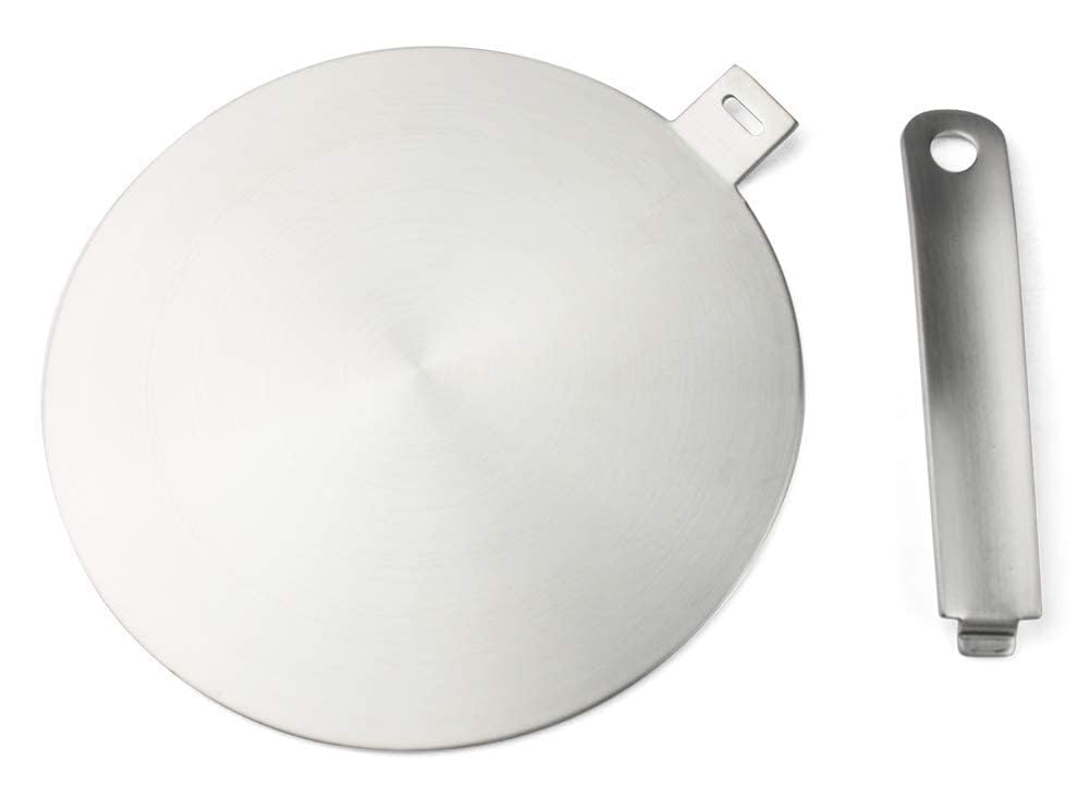 The disc of the heat diffuser consists of three layers. The upper and the bottom layers are stainless steel, whereas the middle is aluminum for excellent heat distribution.