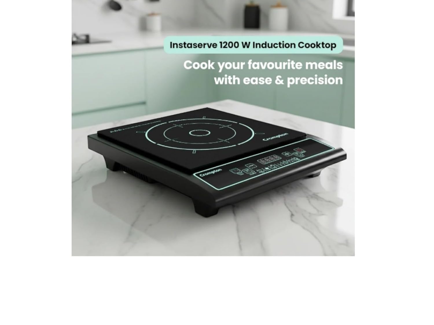 Transform Your Cooking Experience with Crompton Instaserve 1200W Induction Cooktop Bring home the perfect blend of technology, safety, and convenience with the Crompton Instaserve 1200W Induction Cooktop. Designed for modern Indian kitchens, this advanced electric cooktop makes cooking faster, safer, and more energy-efficient than ever before. Powerful 1200W Performance Experience lightning-fast cooking with 1200 watts of power that heats your cookware instantly. Whether you’re boiling milk in the morning, preparing elaborate meals for family gatherings, or quickly frying snacks, the Crompton Instaserve delivers consistent, powerful heat that cuts your cooking time significantly. Save precious time and energy while enjoying perfectly cooked meals every day. Smart Feather Touch Controls Say goodbye to traditional knobs and dials. The 11 feather touch buttons provide precise control over your cooking with just a gentle tap. Adjust power levels, set timers, and select cooking modes effortlessly. The responsive touch panel is designed for Indian cooking needs, giving you complete command over temperature and timing.