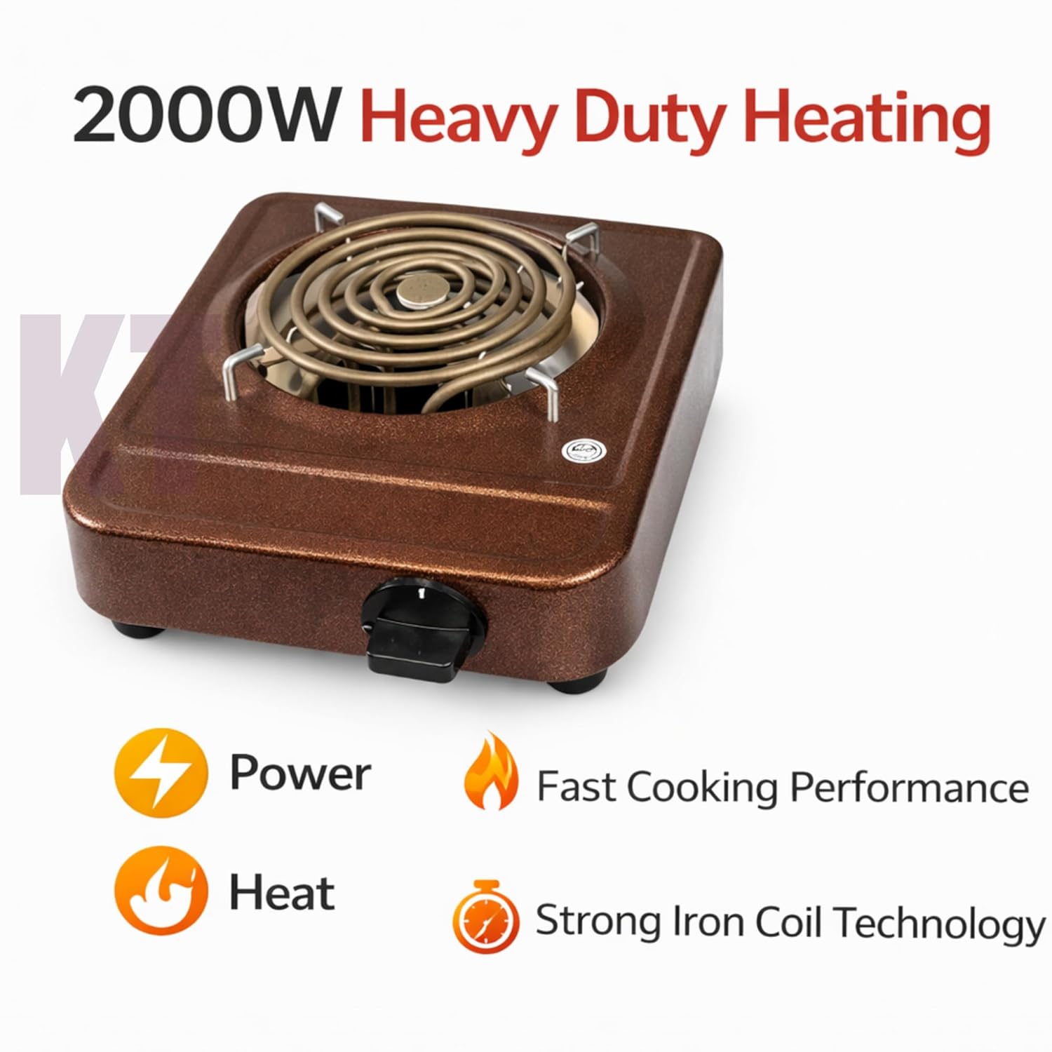⚡ 2000 WATT POWERFUL FAST HEATING Equipped with a heavy-duty 2000W iron coil, this electric stove delivers fast and consistent heating for boiling, frying, and cooking. Strong heat output makes it ideal for daily cooking needs, outperforming low-power stoves and ensuring quick results even during busy kitchen hours.
