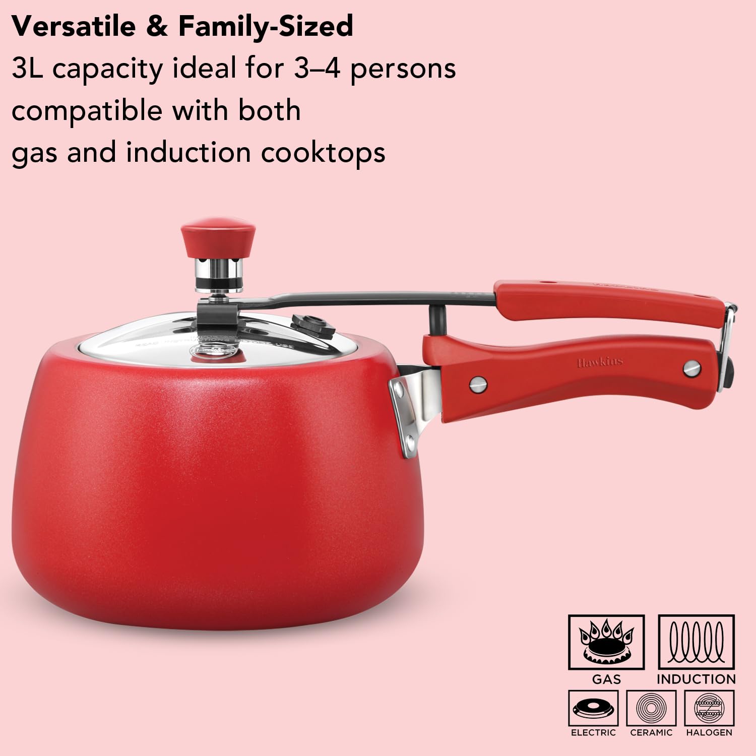 Hawkins 3 Litre Cerenity Pressure Cooker, Ceramic Coated Body, Stainless Steel Lid, Gas & Induction Compatible, Tomato Red (ICR30)