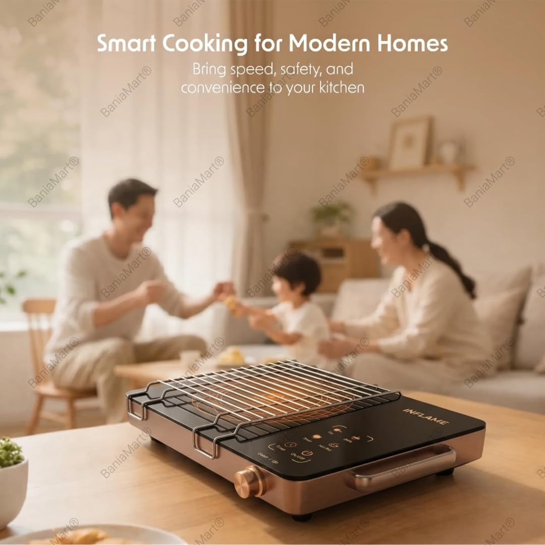 Modern Infrared Induction Stove with ss grill , black glass top , premium golden and brown design Modern Infrared Induction Stove with ss grill , black glass top , premium golden and brown design