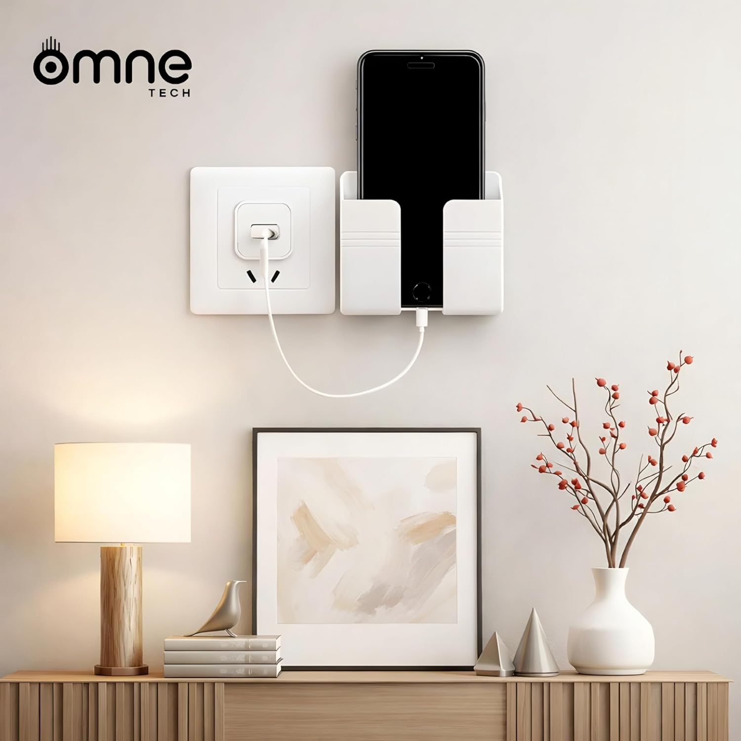 Wall Mount Mobile Phone Holder with Charging Support: Designed to be installed near switchboards, this wall-mounted phone holder allows safe and convenient charging without letting the phone hang or rest on the floor.