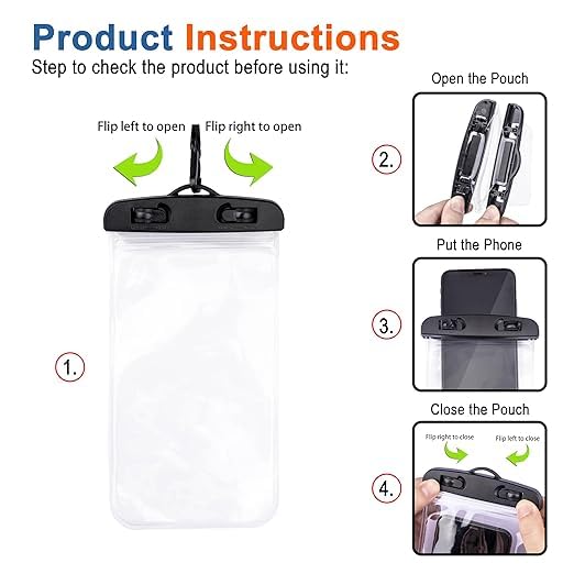Water Proof Pouch Cover for mobile water Protector for Smartphones. These pouch cover provide a reliable waterproof seal, protecting your phone from water, sand, and dust, Universal size waterproof case cover bag fits for all types of smartphones.