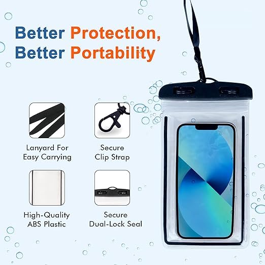 This waterproof phone pouch keeps your device safe from water, dust, and dirt, making it perfect for outdoor adventures.